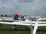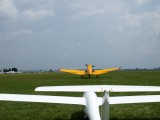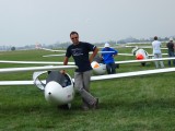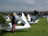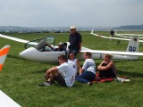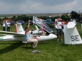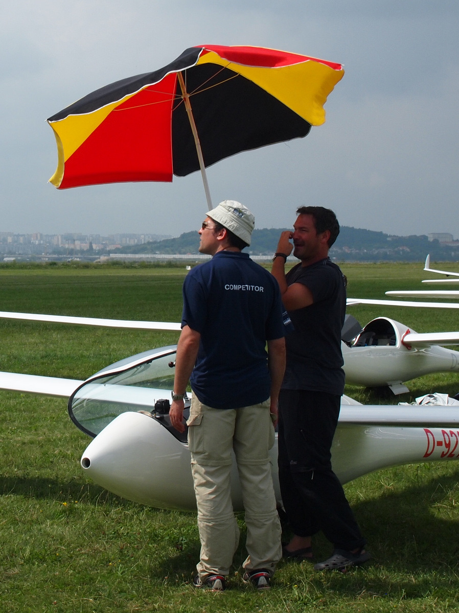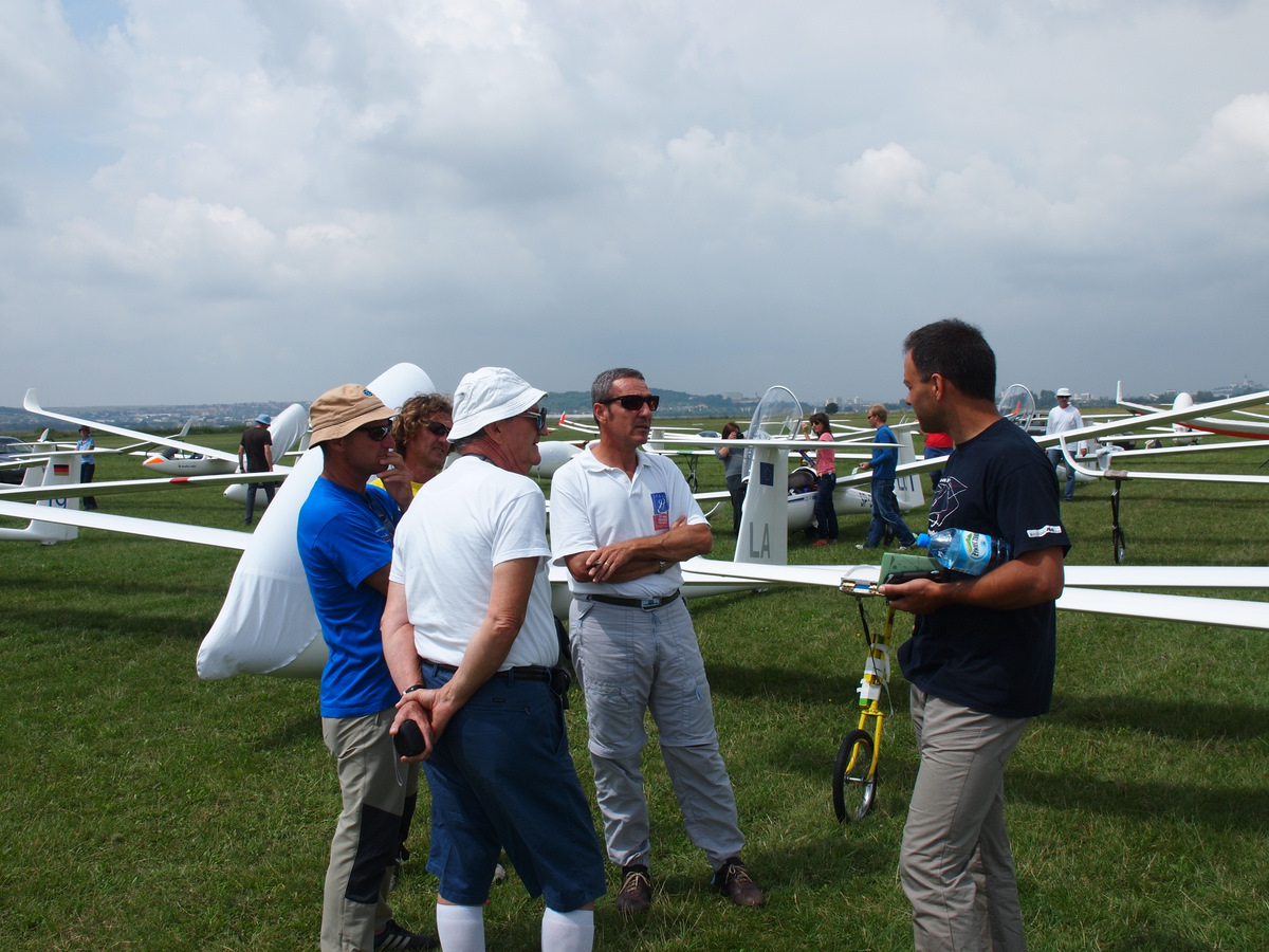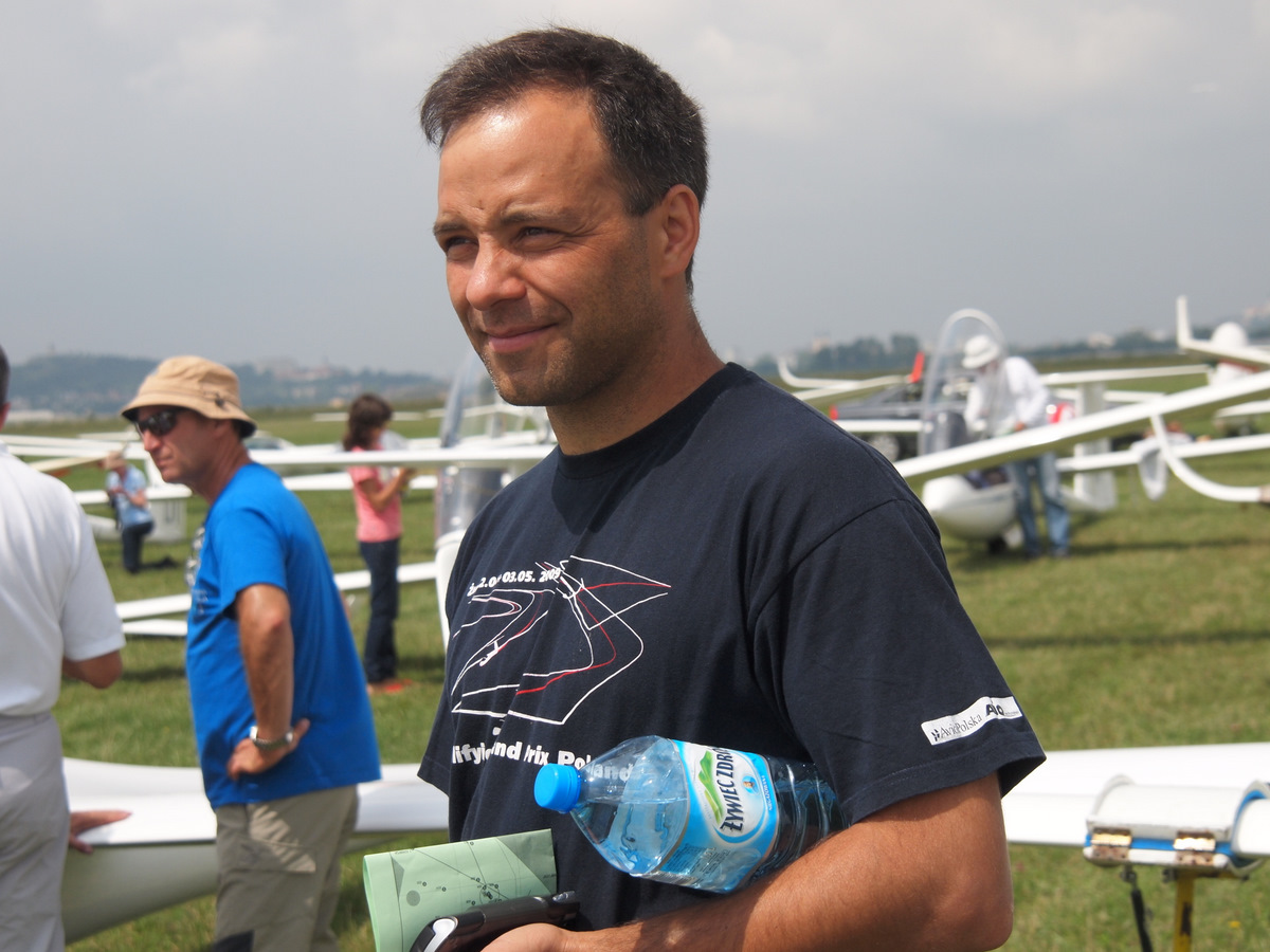 Ranek przywitał nas w typowy już sposób, czyli pełnym pokryciem nieba chmurami warstwowymi i dodatkowo mgłami, które przesłoniły widok na  topole nad rzeka po drugiej stronie lotniska. Nitra i południowa Słowacja znów  znalazły się pod wpływem niewielkiego niżu z centrum nad Budapesztem, którego wpływ był widoczny w niższej atmosferze. Wyraźnie  można było oglądać na zdjęciach satelitarnych chmury wirujące w lewą stronę wokół lotniska.  Z tego powodu ich warstwy uniemożliwiały słońcu nagrzewania powierzchni ziemi i lotnisko było zasnute mgłą . Młody meteorolog bez entuzjazmu przedstawił nam swoją wizję na dalsza część dnia.Trudno mu się dziwić, bo diagramy z okolicznych wzlotów aerologicznych odzwierciedlały niemal identyczne , tylko  jakby  narysowane nieco drżąca ręką , nakładające się na wykres adiabaty wilgotnej  . W tym wilgotnym powietrzu szybko i wysoko pięły się brzemienne w wodę giganty.Sytuacje mogło uratować jedynie rosnące ciśnienie.I tak się chyba stało, bo ostatecznie rozwój chmur ku stratosferze został nieco przyhamowany a  podstawa chmur podniosła się około południa na 600m nad poziom lotniska. Chwilami było nieco lepiej, ale na trasie były momenty, że przelatywaliśmy nad  chmurami pełzającymi niemal po ziemi…   Początkowo przez długi czas pogoda nie dawała szans na loty szybowcem, ale  po południu atmosfera nieco się podgrzała i zaczęło przeświecać słońce , podświetlające  wieże piętrzących się wokół chmur. W tej sytuacji na pierwszy ogień w powietrze znów wzbiły się PW5 , by sprawdzić noszenia. Ponieważ jedna PW5, wybroniła  się przed lądowniem  z wysokości 70 m nad lotniskiem, poderwano w górę także pozostałe klasy.  Ostatecznie podstawa podniosła się  do „zawrotnej”  wysokości 800 m nad poziom lotniska , toteż  nikt nie czekał z odlotem natrasę. My startowaliśmy pod koniec kolejki, więc do linii startu musieliśmy się  przebijać  się 13 km przez deszcz i  lotem ślizgowym wracać do aktywnego cumulusa nad lotniskiem. Lecąca nieco przed nami grupa z Niemcami złapała  silniejszy komin i trochę nam uciekli, ale problemy już na pierwszym PZ spowolniły tę ucieczkę. W tym obszarze mieliśmy okazję upajać się widokami znad  chmur. Było by to bardzo interesujące, ale podstawa tych chmur sięgała około 400m nad teren. Na, nasze szczęście dalej na południu , nad dolinami przy Dunaju ,  wielkie chmury nieco odżyły a burze szalały w innych rejonach, więc już bez przykrych niespodzianek ukończyliśmy  trasę.  Inne grupy miały trudniej, bo na ich trasach ziemia była bardziej wychłodzona przez obfite deszcze, mieli też duże obszary rozpadających się chmur i  trudno było się utrzymać w powietrzu. Wielkie szczęście miał Michał Lewczuk z Piotrem Pawłowskim. Gdy spadli do wysokości około 150 m nad teren zdecydowali się postawić kolumnę ze śmigłem i uruchomić silnik dolotowy, ale silnik nie odpalił. Mieli by spore kłopoty lądując z takim układem hamującym , ale trafili akurat na komin który uratował ich z opresji i pozwolił na dalsze kontynuowanie  swobodnego szybowcowego lotu. Szybowce klubowe  i Pw5  mimo poważnych kryzysów także w  w większości wybroniły się  i ostatecznie zafundowały kibicom piękne widoki grupowych dolotów. Prognozy na następne dni nadal są typowe  dla niżów węgierskich, toteż tak tu , jak i w Polsce nie spodziewamy się suszy.