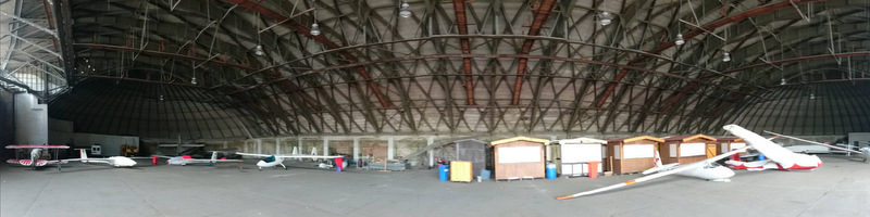 Każdy ma obowiązek popracować trochę na drugim końcu liny, więc wszyscy klubowicze musza mieć wewnętrzne przeszkolenie na operowanie wyciągarką. W efekcie starty są bardzo tanie – 1,50 za hol. Jeszcze jednej rzeczy można pozazdrościć a mianowicie ogromnego wojskowego hangaru sprzed wojny. Przestrzeń budowli o długości 300m jest tak olbrzymia, że nie ma potrzeby ustawiać szybowców jeden nad drugim a duża część jest wynajmowana na przechowywanie rozmaitych domków, przyczep itp. W zasadzie, gdyby ktoś chciał, to spod sufitu dało by się skoczyć na spadochronie.