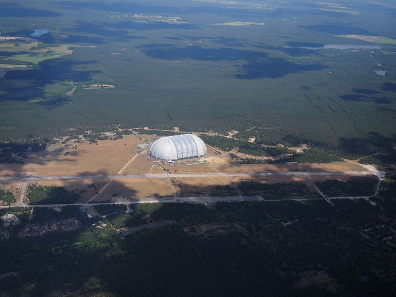 Po drodze z daleka rzucała się w oczy ogromna hala po Zeppelinach, przerobiona na oryginalne kąpielisko. Szklany dach pozwala symulować tropikalny klimat pod Berlinem.
