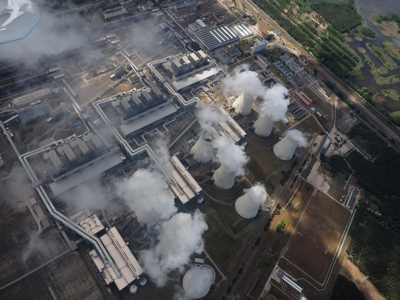 Cotbus .Termika przemysłowa. Podgrzane przez chłodnie kominowe powietrze wędruje ku górze.